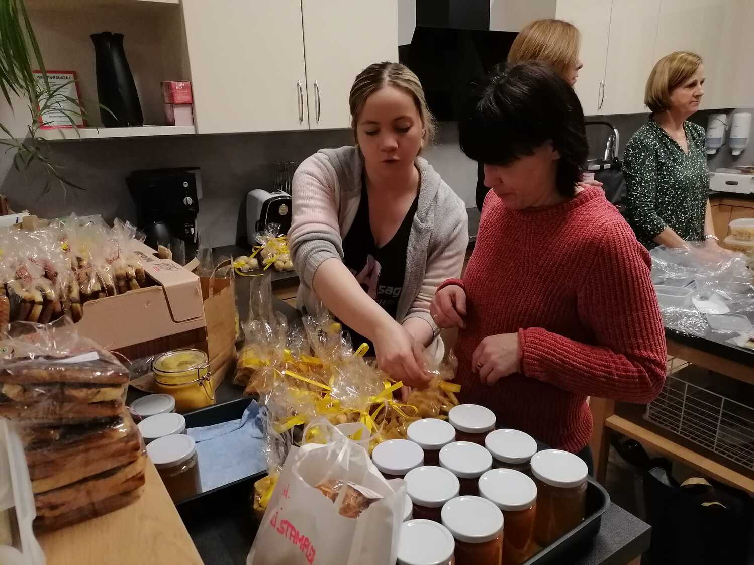 Viele Engagierte stellten ihre hausgemachten Suppeneinlagen sowie Suppen im Glas zur Verfügung und halfen beim Einpacken mit großer Begeisterung. Dadurch konnten wir diese vielfältigen Köstlichkeiten wieder am Marktplatz gegen eine Spende anbieten. Unser Ziel war es, als Kirche mitten im Ort präsent zu sein und möglichst viele Menschen zu erreichen. Dank der zahlreichen Spenden können wir die Frauen von Mindanao Migrants Center, welche sich für die Rechte von Arbeitsmigrant:innen auf den Philippinen einsetzen, mit einem Betrag von € 1.086,-- unterstützen.