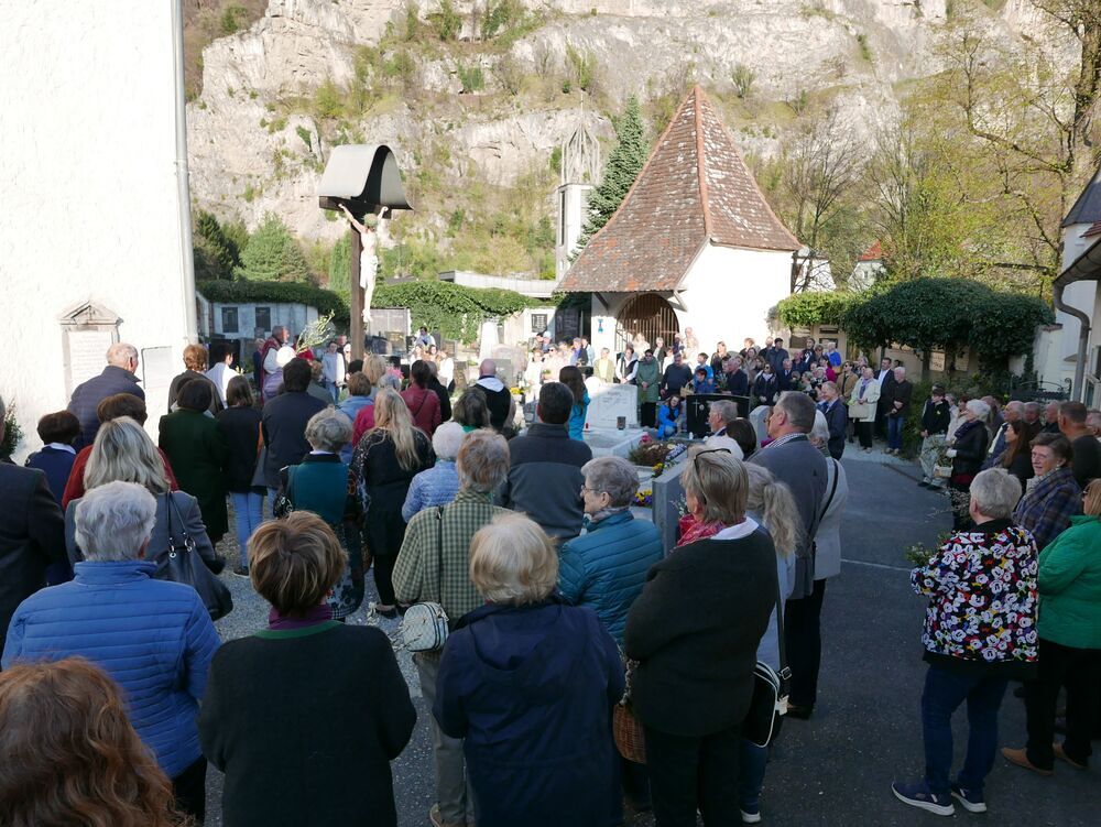 Am Vorabend des Palmsonntags versammelten sich zahlreiche Menschen vor dem Friedhofskreuz in Peggau. Es war ein freudiges Wiedersehen für viele, die sich lange nicht begegnet waren – eine Atmosphäre der Gemeinschaft und Verbundenheit erfüllte den Platz.