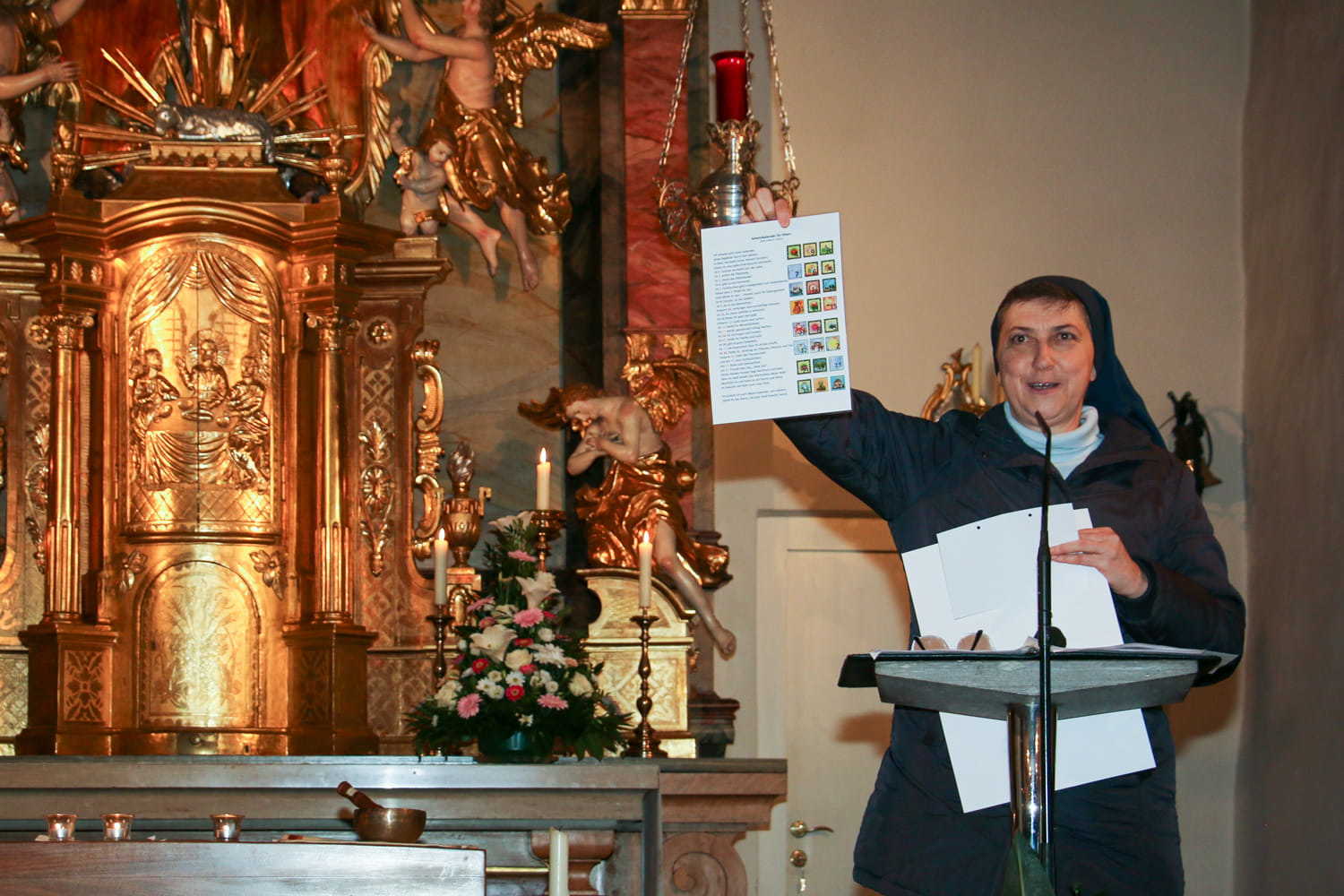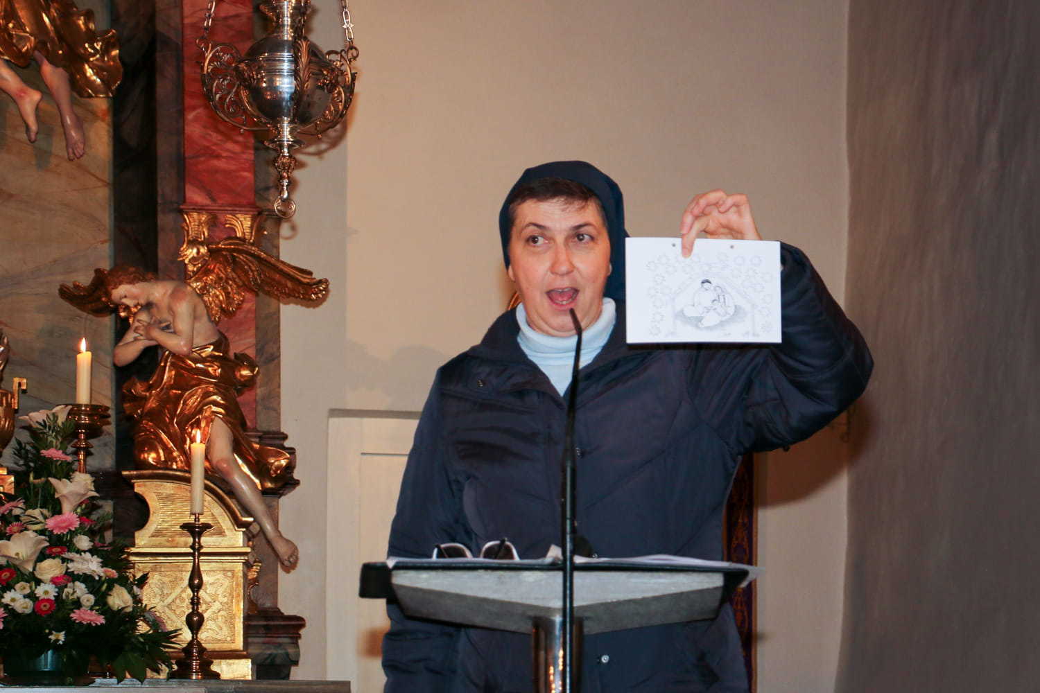 Am Beispiel des Schusters Martin hörten die Kinder, was es heißt: „In jedem Menschen Jesus sehn und nicht an ihm vorübergehn!“ Der Adventkranz und die verschiedenen Adventkalender (Jungschar, Sternenkalender und einer für die Eltern) können uns helfen und erinnern, Lichtbringer für die Menschen zu sein.