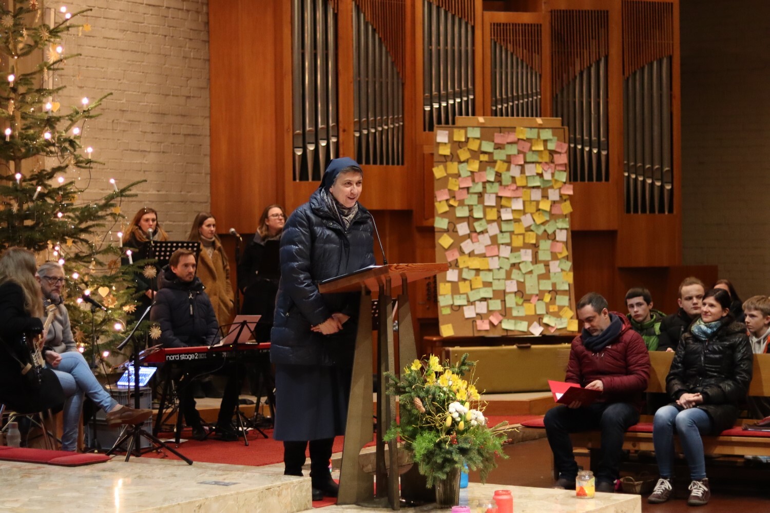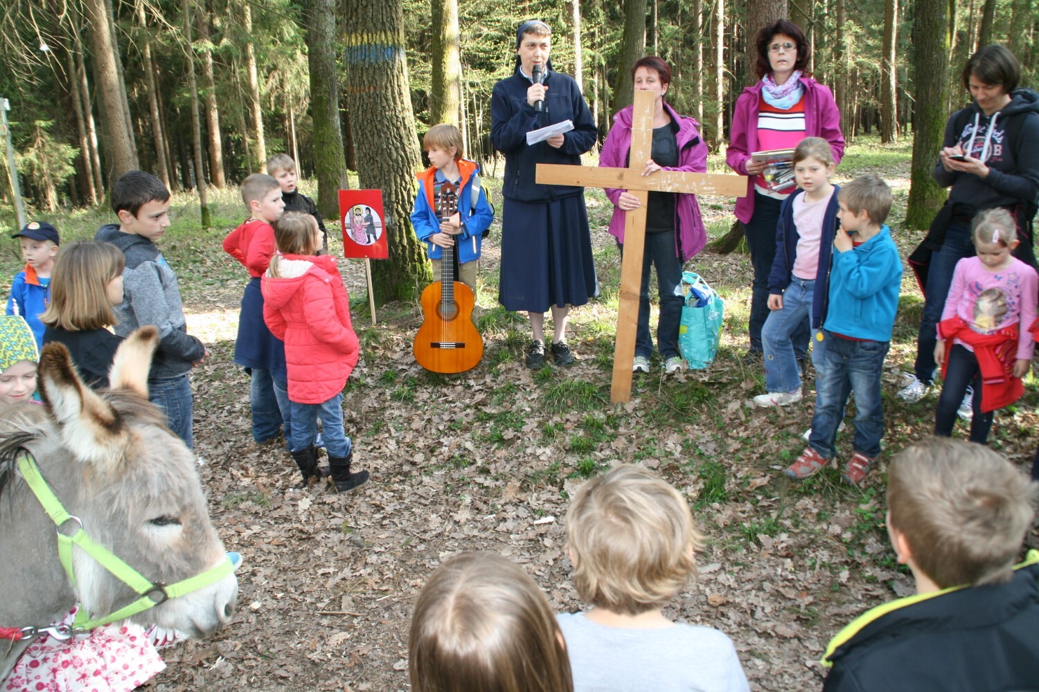 Sr. Maria wird bei ihrer Predigt zum Advent von den Kindern unterstützt.