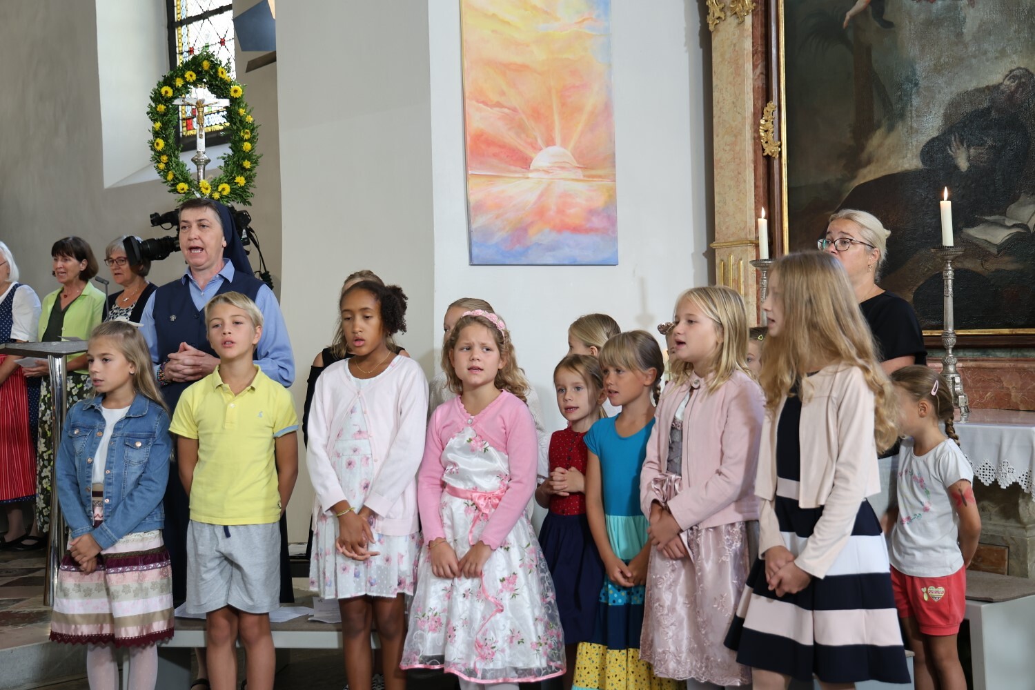 Sr. Maria begleitet die Kinder bei der ersten Wort-Gottes-Feier im österreichischen Fernsehen.