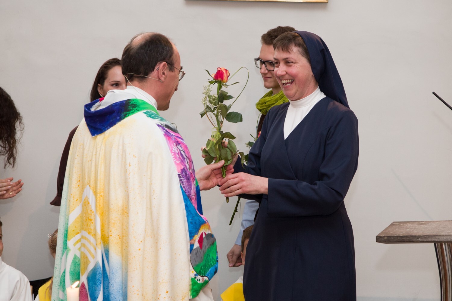 Pfarrer Johann Karner bedankt sich bei Sr. Maria