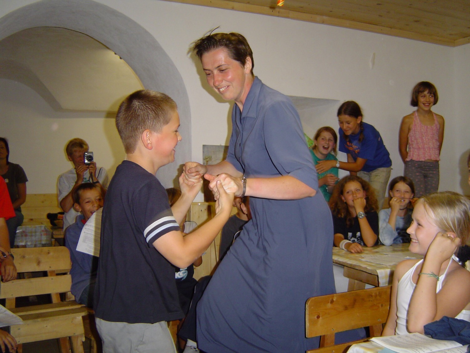 Sr. Maria singt zum Morgenlob ein Lied mit den Kindern