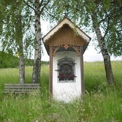 Das Gnadenbild im Sigl-Kreuz ist von zwei farbenprächtigen Maria- und Jesus-Statuen flankiert und die Nische ist mit einem kleinen Holzkreuz, Blumenstöcken und Kerzen liebevoll geschmückt. Neben dem Sigl-Kreuz steht eine gemütliche Holzbank, die zum Verweilen und Besinnen einlädt.
